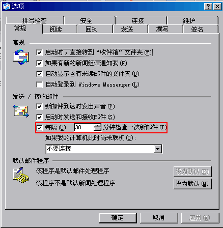 分钟检查一次新邮件,您可以根据需要进行设置。